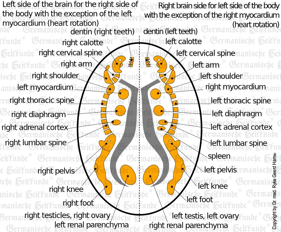 Self-devaluation conflict, for each skeleton part, there is a definite self-value content (see graphic).- for the right-handed person concerning mother or child